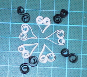 | Dann zieht man die Nadel (Zahnstocher) raus und lässt den Kreis in gewünschter Größe aufspringen. Für den Schneemann muss man "Herzen" und "S" formen. Was es für Formen gibt, könnt Ihr hier nachlesen. Link für die Formen |